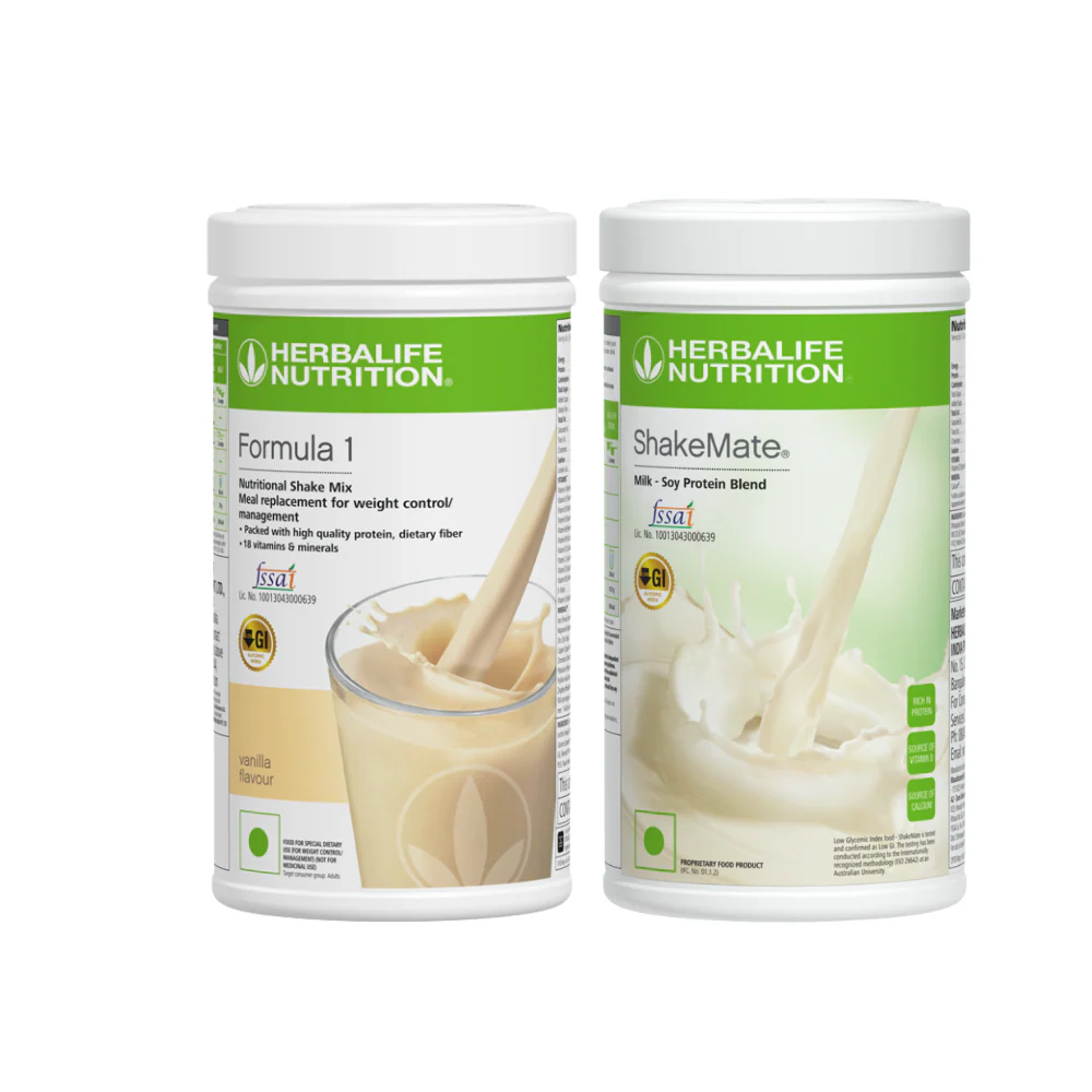 Herbalife Formula 1 Vanilla Nutritional Shake, Shakemate, 200g Protein Powder, and Afresh lemon Wellness Pack